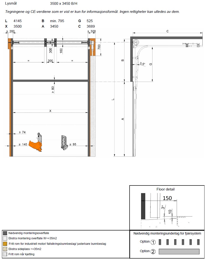 - Edlandsporten industriport med beslag for min 80cm fri overhøyde.