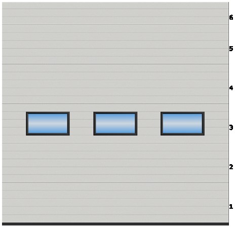 Industriport BxH 350x345cm med skinner for min. 80 cm fri overhøyde. RAL9002, 1 rad vinduer.